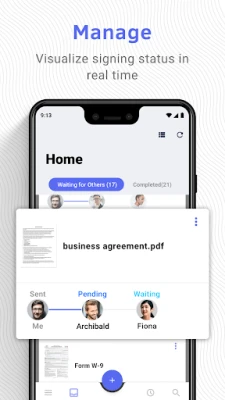 Pioneering in e-signing on mobile devices, DottedSign lets you effortlessly sign documents and get signatures from others in a legal and secure process. Stop wasting time emailing signers, printing copies, and faxing paper. Use DottedSign to complete your work, including NDAs, sales contracts, lease agreements, permission slips, financial agreements, and more. Just import your document, sign or request signatures, and send.Ensure your important business cases do not slip through the cracks.