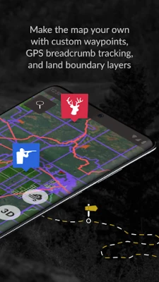 • Additional public and private land layers. The available layers differ for each province. See https://www.ihunterapp.com/ for more information.