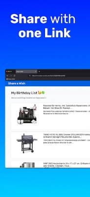 Looking to efficiently manage and share your wishes and gift ideas? With Share a Wish, you can create, manage, and effortlessly share wishlists with friends and family. Whether it's for birthdays, weddings, holidays, or other special occasions, Share a Wish helps you always find the perfect gift.